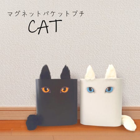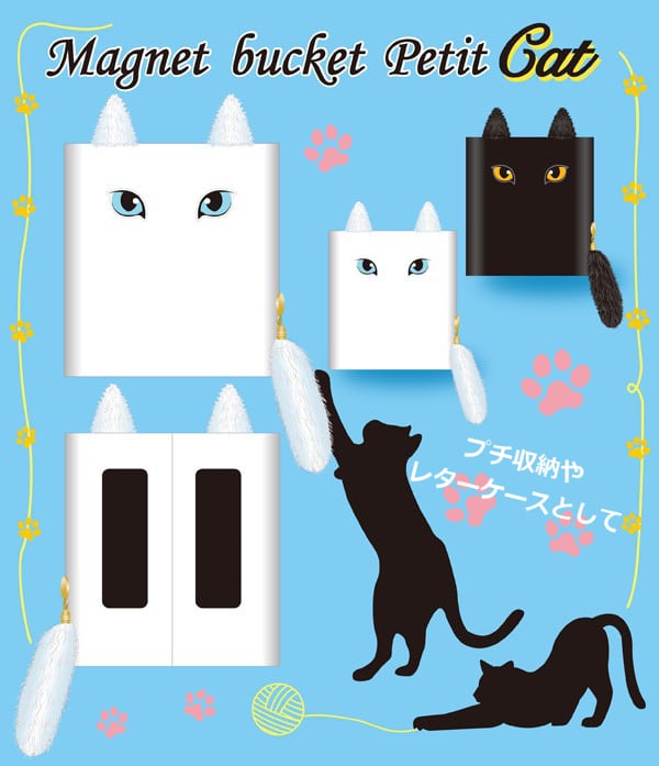 コンパクト収納に人気の『マグネットバケットプチ』に、猫をイメージしたパーツを追加。