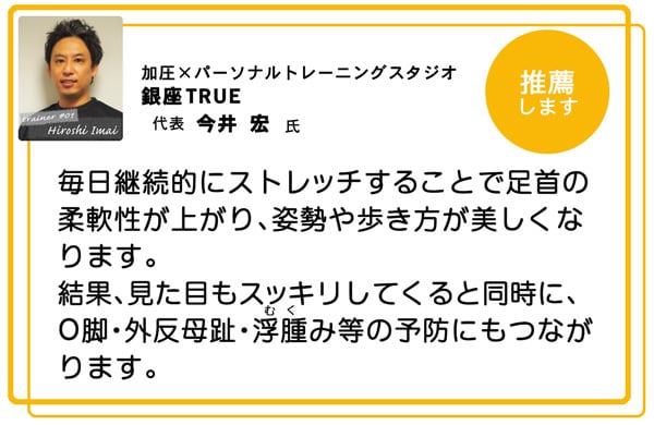 アキレス腱・ふくらはぎの筋肉などが良く伸ばされ脚が疲れにくくなります。